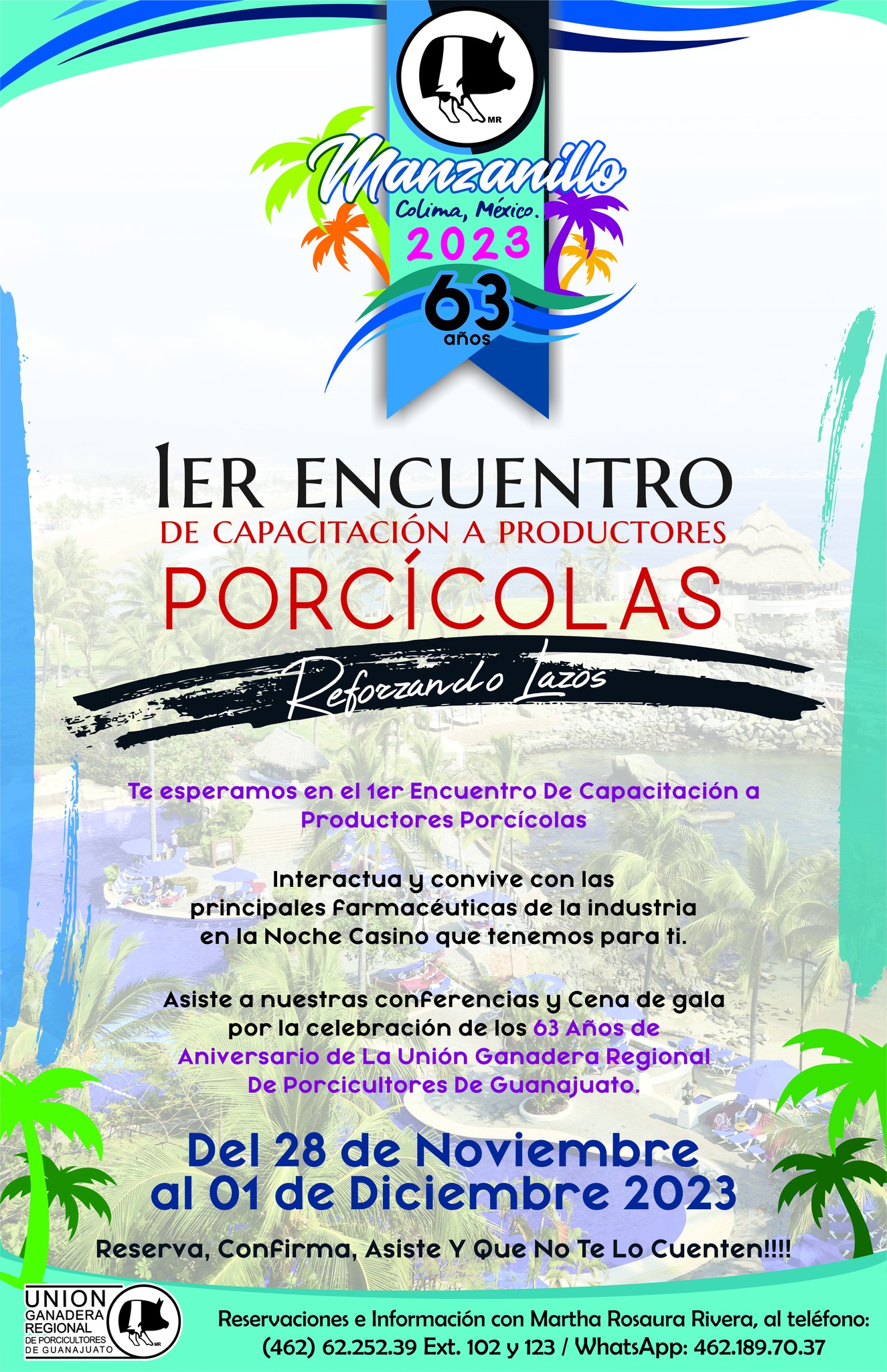1er Encuentro De Capacitación A Productores Porcícolas. Del 28 De Noviembre al 1 De Diciembre Del 2023 En Manzanillo. Reservaciones e Informes al: WhatsApp 462.189.70.37 con Martha Rosaura Rivera
